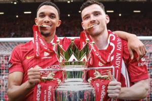 英超官推曬出羅伯遜與阿諾德的合照,配文寫道:“前隊友阿諾德是英超歷史上唯一一個比羅伯遜助攻多的后衛。”