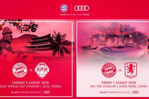 拜仁慕尼黑第十屆奧迪夏季行將于今年8月1日至8日再度登陸亞洲,球隊將先后前往韓國濟州島與中國香港。本次奧迪夏季行將舉辦兩場奧迪足球峰會:孔帕尼率領的球隊于8月4日在濟州對陣濟州SK,8月7日轉戰啟德體育場迎戰英超阿斯頓維拉。