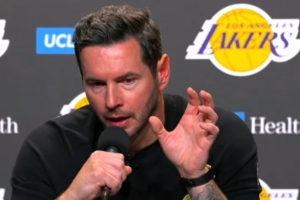 記者:“嘿,JJ。哦,抱歉,你先說吧。顯然,勒布朗的角色最近發(fā)生了很大變化。當(dāng)你談到展現(xiàn)斗志時(shí),看到像勒布朗這樣41歲的老將依然在場(chǎng)上拼盡全力,其他人自然也不敢松懈。你剛才提到你們開了個(gè)會(huì),他當(dāng)時(shí)在會(huì)上給大家傳達(dá)了什么信息?”
