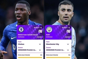 羅德里(曼城):射門0.6次、創造機會1.7次、搶斷2.6次,成功過人0.5次、地面對抗成功率77.78%、成功對抗6.9次,空中對抗成功率63.21%,攔截1次、奪回球權6.6次