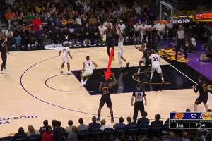 GIF-詹姆斯妙傳八村塁壓哨三分