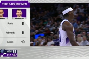 爵士主場迎戰灰熊,截至發稿貝茲·姆本和康查爾同時達成三雙。