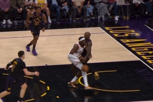 GIF-詹姆斯切掉馬威的球被吹犯規,湖人挑戰