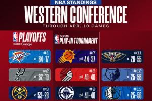體育資訊04月11日訊 常規賽倒數第二個比賽日,15場比賽全部結束,讓我們繼續來關注最新排名。