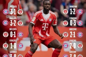 體育資訊4月11日訊 拜仁將在本輪德甲對陣圣保利,歷史交鋒數據統計顯示拜仁占據明顯優勢。