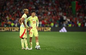 在巴薩的首發(fā)陣容中,除了阿勞霍外,其他10名球員均為西班牙人,而且?guī)缀醵际俏靼嘌绹_,他們分別是霍安·加西亞、庫巴西、赫拉德·馬丁、巴爾德、埃里克·加西亞、佩德里、加維、費(fèi)爾明、亞馬爾以及費(fèi)蘭·托雷斯。