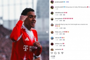 穆西亞拉也在賽后通過社媒曬出自己的比賽照,并配文:“今天在客場取得大勝,我們會繼續前進。”
