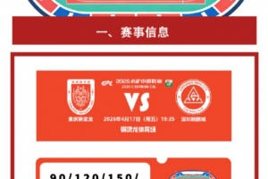 體育資訊4月13日訊 重慶銅梁龍發(fā)布中超第6輪對(duì)陣深圳新鵬城票務(wù)信息,本場(chǎng)門票售價(jià)90元-300元。