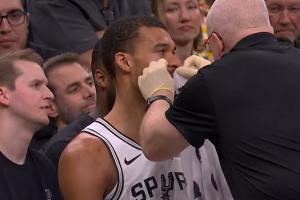 GIF-豪澤一巴掌扇到文班臉上,后者下場處理一下傷勢