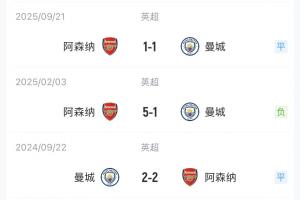 雖然不久前的聯賽杯決賽阿森納0-2不敵曼城,但槍手在英超對曼城已5場不敗(2勝3平),其中客場分別是0-0、2-2。