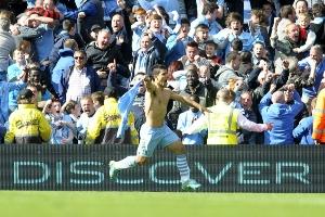 這是英超歷史上最具標(biāo)志性的畫面之一:阿圭羅在第94分鐘打入制勝球,將冠軍獎杯從死敵曼聯(lián)手中奪走后,他脫掉球衣慶祝。