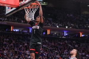 體育資訊3月8日訊 火箭球員阿門在本隊擊敗開拓者的賽后接受媒體采訪。