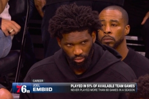 據統計,恩比德生涯的出勤率僅51%,單賽季出戰場次從未超過68場(最高就是2021-22賽季的68場)。