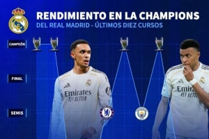 體育資訊4月16日訊 歐冠1/4決賽次回合比賽,皇馬客場3-4不敵拜仁,兩回合總比分4-6出局。德國轉會市場盤點了皇馬近10個賽季的歐冠成績。