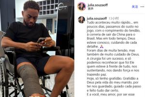 一切來得太突然…這幾天從比賽中的驚魂一幕,到肌腱斷裂,再到返回巴西接受治療,盡管匆忙,但上帝一直與我們同在。手術(shù)很成功,希望上帝守護我們,給我們力量,保我們平安。