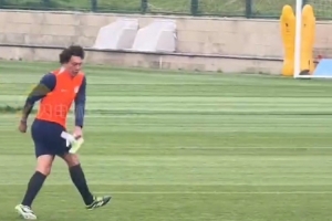 據(jù)“閃電新聞”報(bào)道,在今日泰山隊(duì)賽前訓(xùn)練中發(fā)生了有趣一幕,在傳遞球訓(xùn)練時(shí)王大雷突然“前插”,從隊(duì)友陳澤仕腳下?lián)屜缕で蚝笸瓿梢荒_射門。