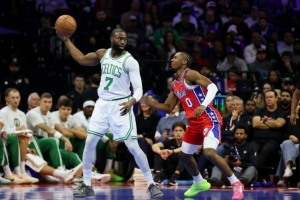 馬祖拉麾下球隊防守體系嚴(yán)密,換防彈性強、籃板保護(hù)到位,能有效限制對手外線出手與內(nèi)線沖擊。核心杰倫?布朗常規(guī)賽場均28.7分6.9籃板5.1助攻,塔圖姆傷愈復(fù)出后狀態(tài)穩(wěn)步回升,兩人組成的雙探花組合兼具攻堅與組織能力,普理查德、豪澤等角色球員提供穩(wěn)定外線火力,替補陣容深度充足。