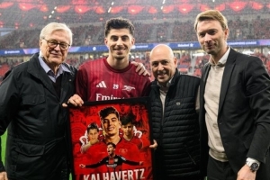 ??有情有義!勒沃庫森在與阿森納的比賽前,為哈弗茨準備了歡迎儀式,看臺上球迷也高舉“歡迎回家”的橫幅。