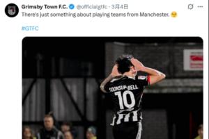比賽結束后,格林斯比官方曬出比分圖,并且配文:“和來自曼徹斯特的球隊踢比賽真的有點說法的。?”