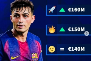 體育資訊3月15日訊 德轉將在明日更新西甲球員身價,并預熱佩德里最新身價可能發生變化。