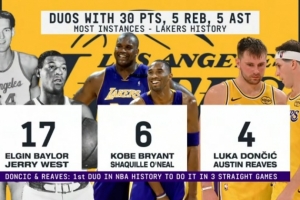 東契奇和里夫斯連續三場同場30+5+5 歷史首對隊友