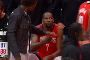 下一篇: 被包夾懵了!杜蘭特中場線附近躲包夾 踩線回場違例了 個人6失誤