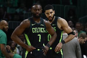 本場比賽杰倫·布朗20中10、21罰19中砍下41分7板6助;塔圖姆18中8砍下21分7板4助。