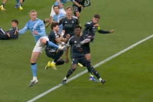 體育資訊03月18日訊 歐冠1/8決賽次回合,曼城對(duì)陣皇馬。曼城角球機(jī)會(huì),哈蘭德等人抗議弗蘭·加西亞手球,裁判沒(méi)有表示。